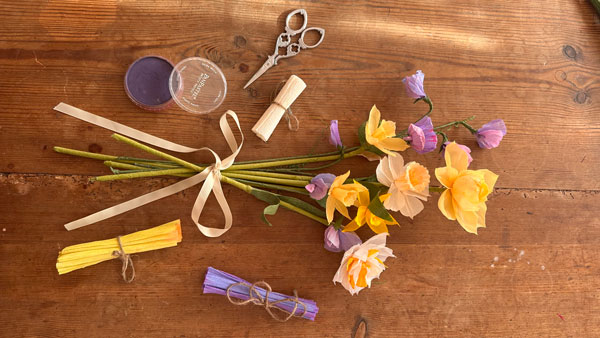 Pappersblommor för alla barn och vuxna, skapa din egen blomma med enkla steg. 6 deltagare.