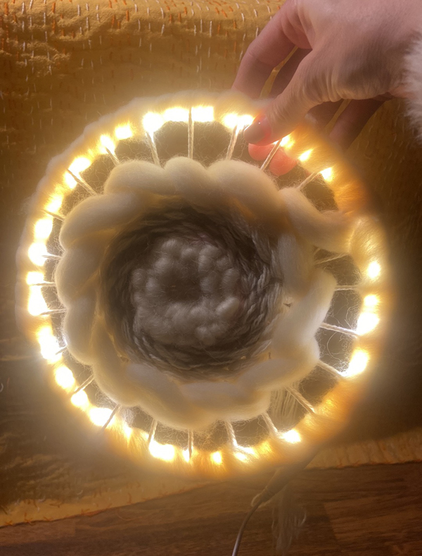 En varm och mysig workshop. I denna workshop skapar vi en liten vävd lampa. Vi väver ullgarn runt en ram och låter ett varmt ljus lysa genom väven. Vi arbetar med ull och skapar något som känns lugnt, mjukt och levande. Under workshopen lär du dig grundläggande vävteknik, enkla men uttrycksfulla som du kan använda i framtida projekt. Inga förkunskaper behövs, bara nyfikenhet och lust att skapa. Start varje hel timme.