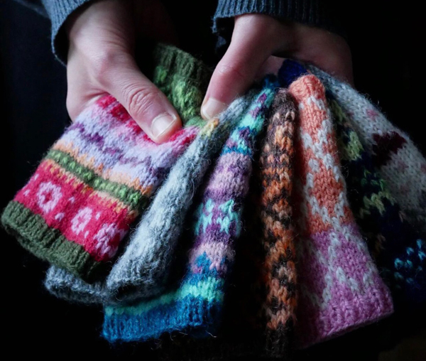 Tekniken Lyfta Maskor ger en snygg struktur och kan användas med en, två eller flera färger. Du stickar bara med en färg per varv, men får fler färger på varven. Tekniken ser avancerad ut men är lätt att lära sig.  Du lär dig tekniken samtidigt som du påbörjar ett par handledsvärmare i två färger, du får med dig mönster och handfärgat nordiskt ullgarn till HELA projektet - så att du kan öva på tekniken och sticka klart hemma. Tekniken är mångsidig och passar till allt från vantar och accessoarer till tröjor och filtar. På kursen stickar vi runt med magic loop eller strumpstickor, men går enkelt att anpassa till stickning fram och tillbaka. Ta med strump- eller rundsticka 3-3,5 mm (minst 80/100cm). Det finns också att köpa i vår monter.