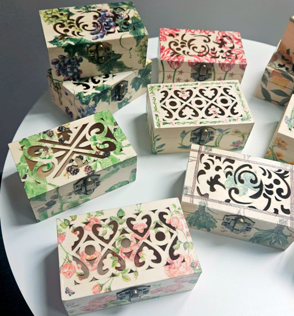 Gör knopar som blir underlägg, servettring eller liten kruka av samma knop. Gör en hängande liten tomte eller korkängel. Start varje heltimme under mässan.